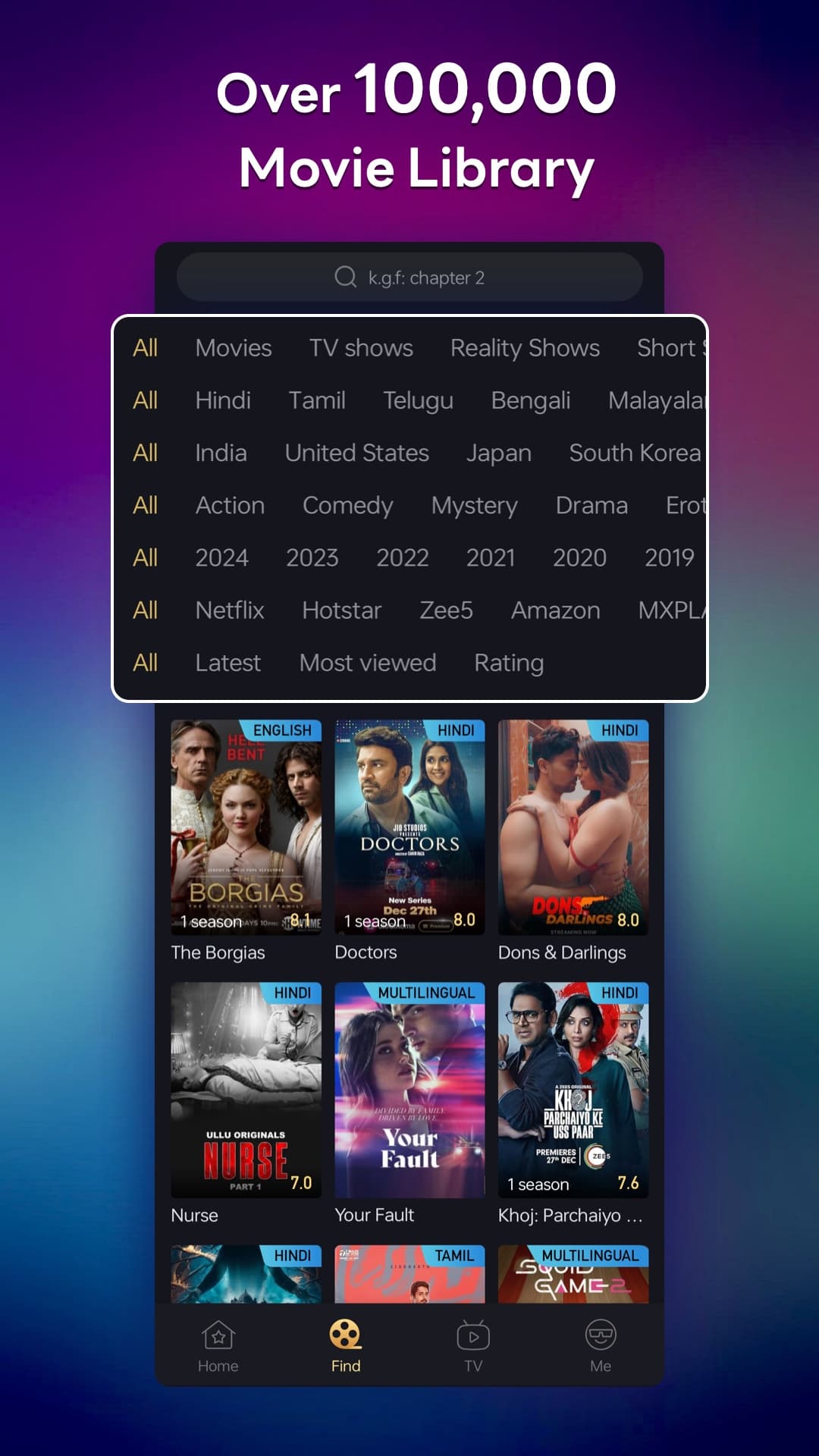 gathers video from all major platforms such as Netflix, ZEE5, Disney+,